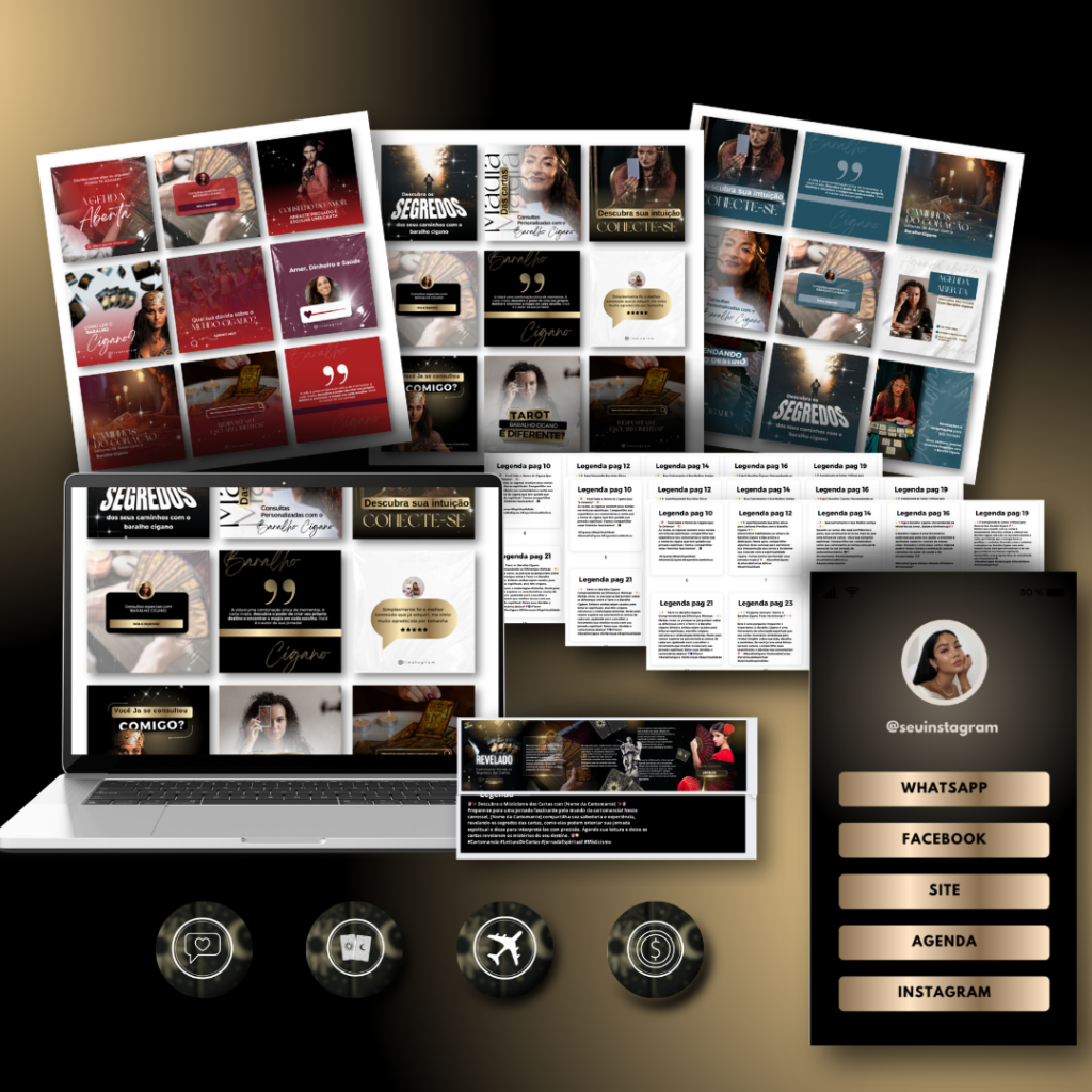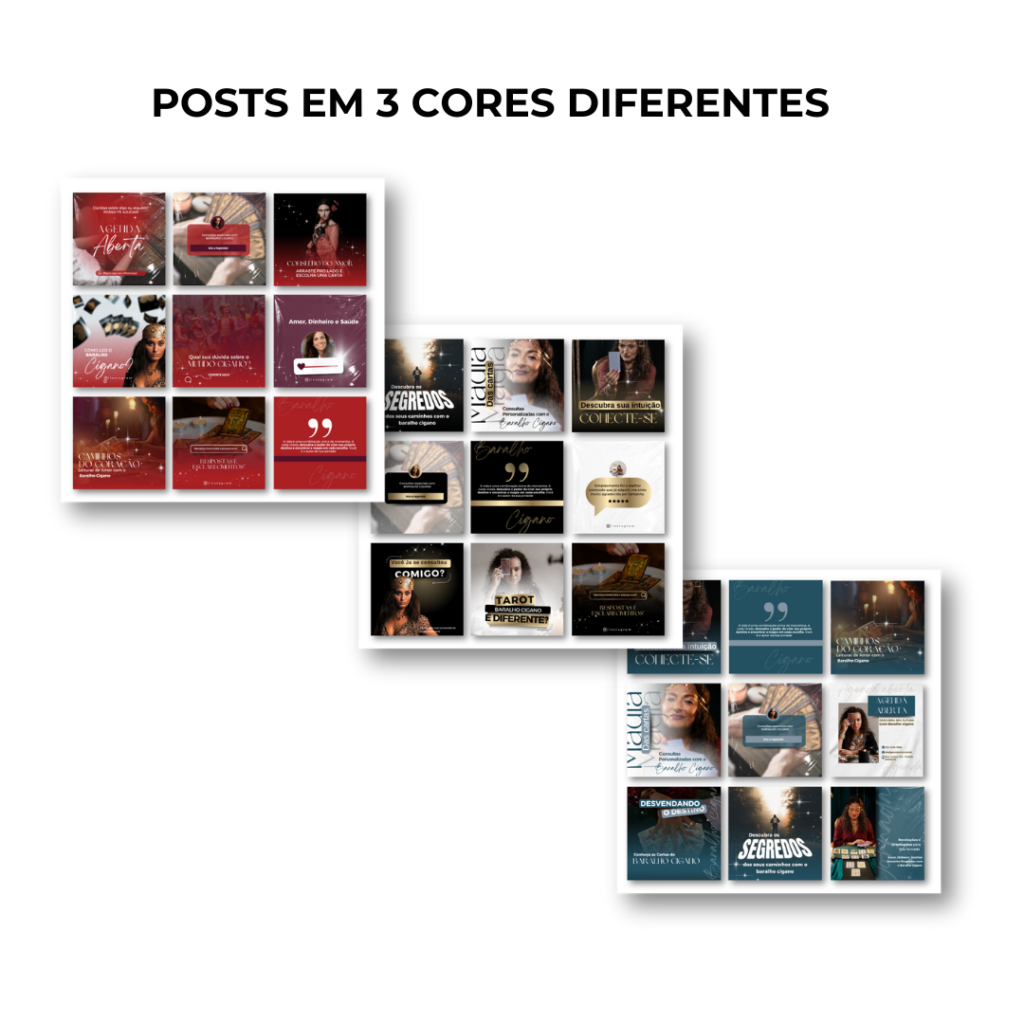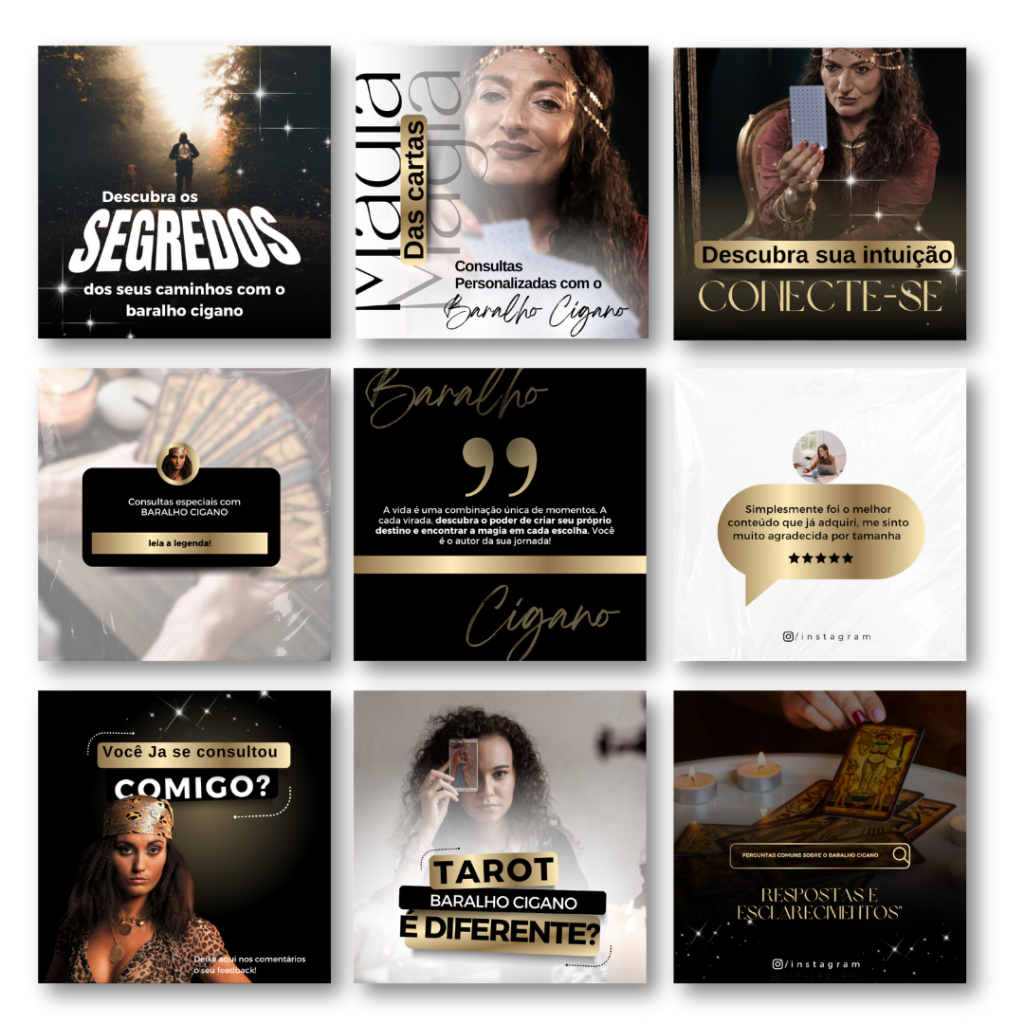 São + de 26 modelos de posts prontos com legendas e 100% editáveis com CONTEÚDO DIRECIONADO para baralho cigano.