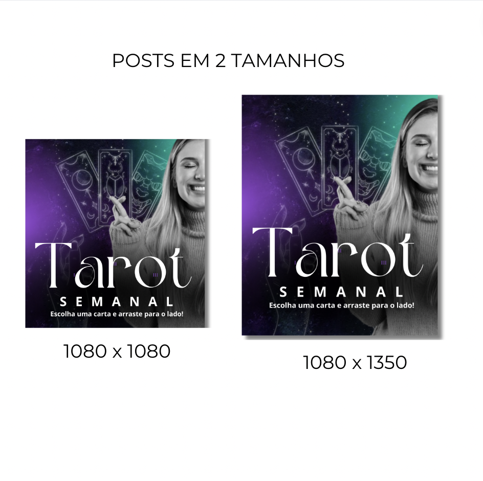 São + de 25 modelos de posts prontos com legendas e 100% editáveis com CONTEÚDO DIRECIONADO para tarot