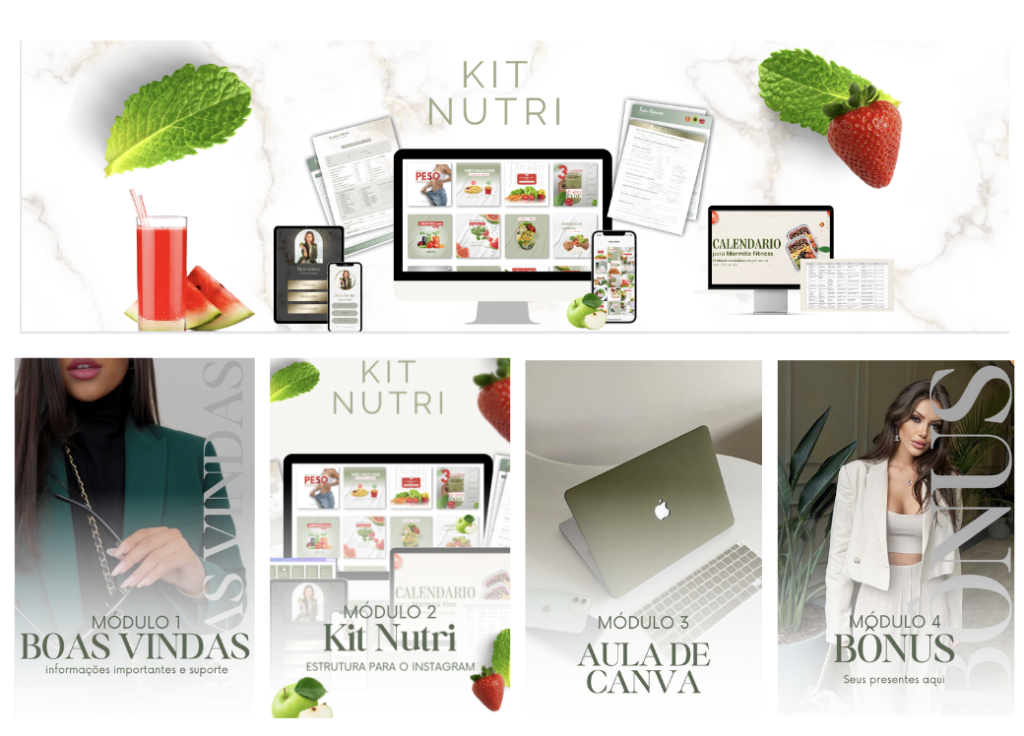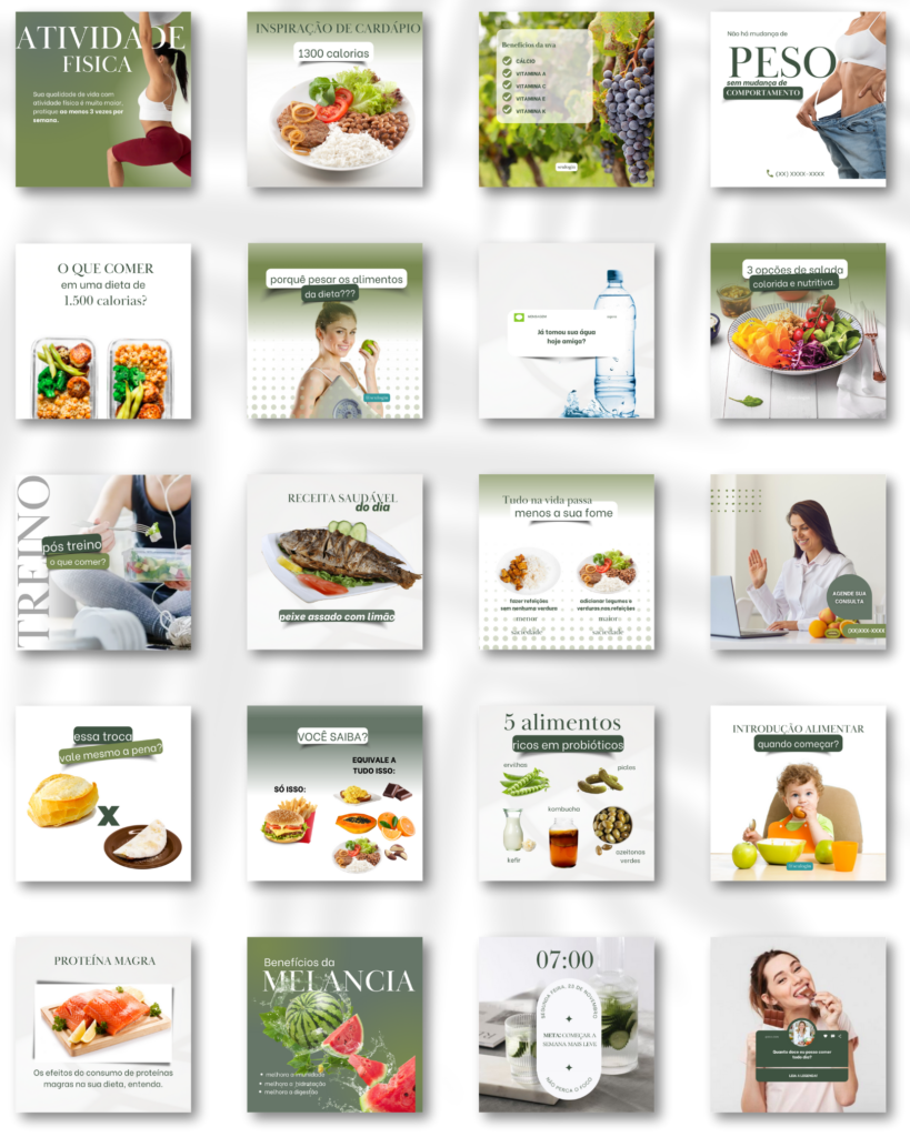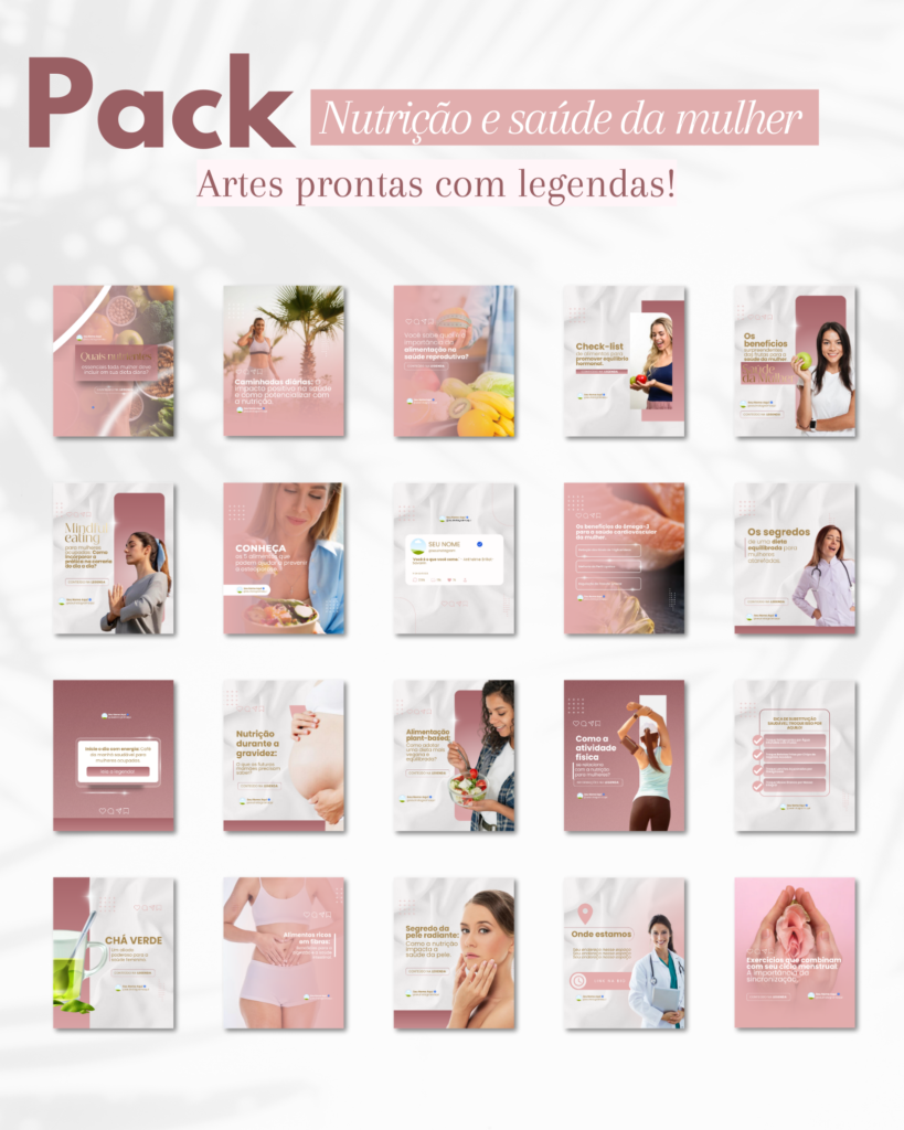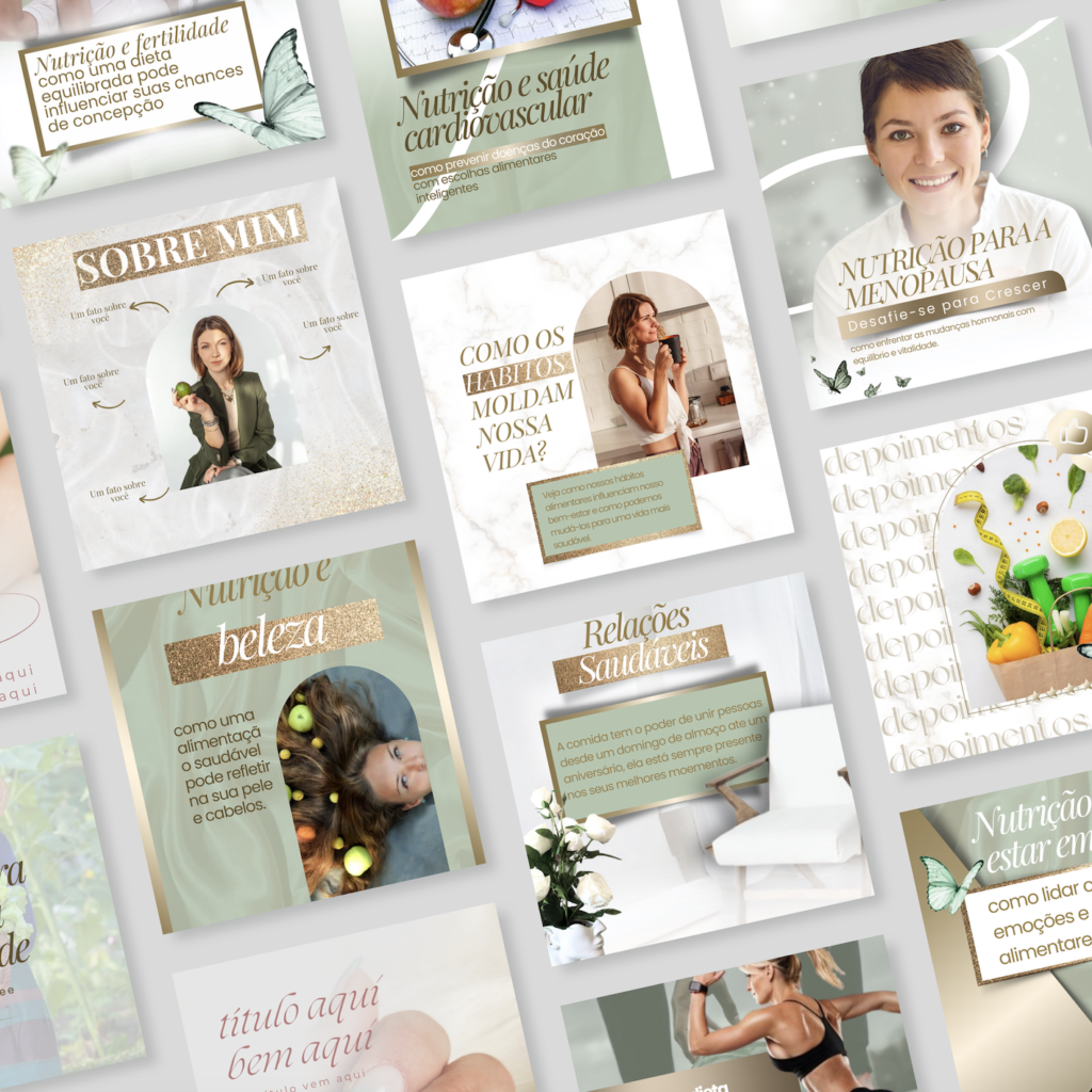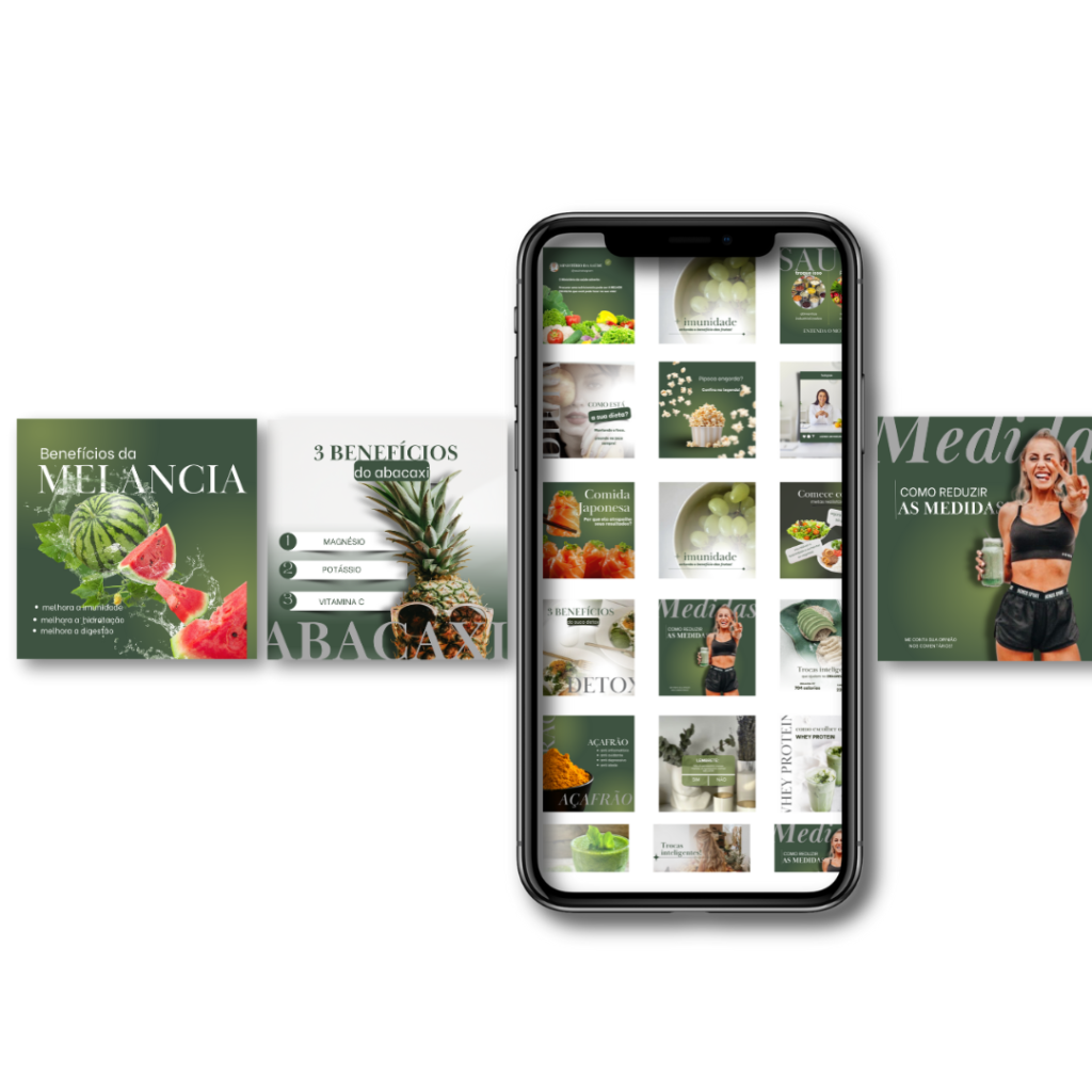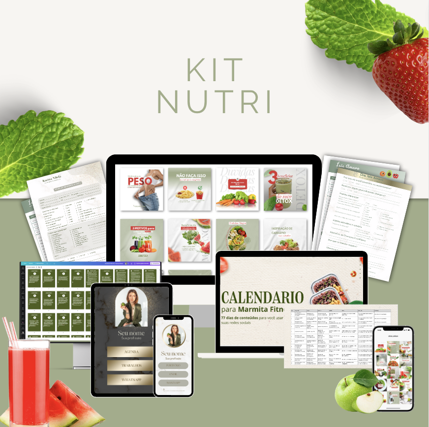 Conheça o Kit para Nutrição mais completo, para profissionais que buscam inovar com elegância e sofisticação. São mais de 150 posts prontos com legendas e muitos conteúdos digitais para te auxiliar.