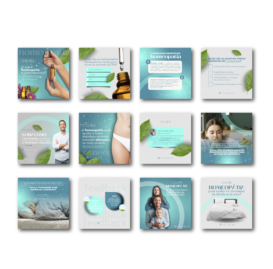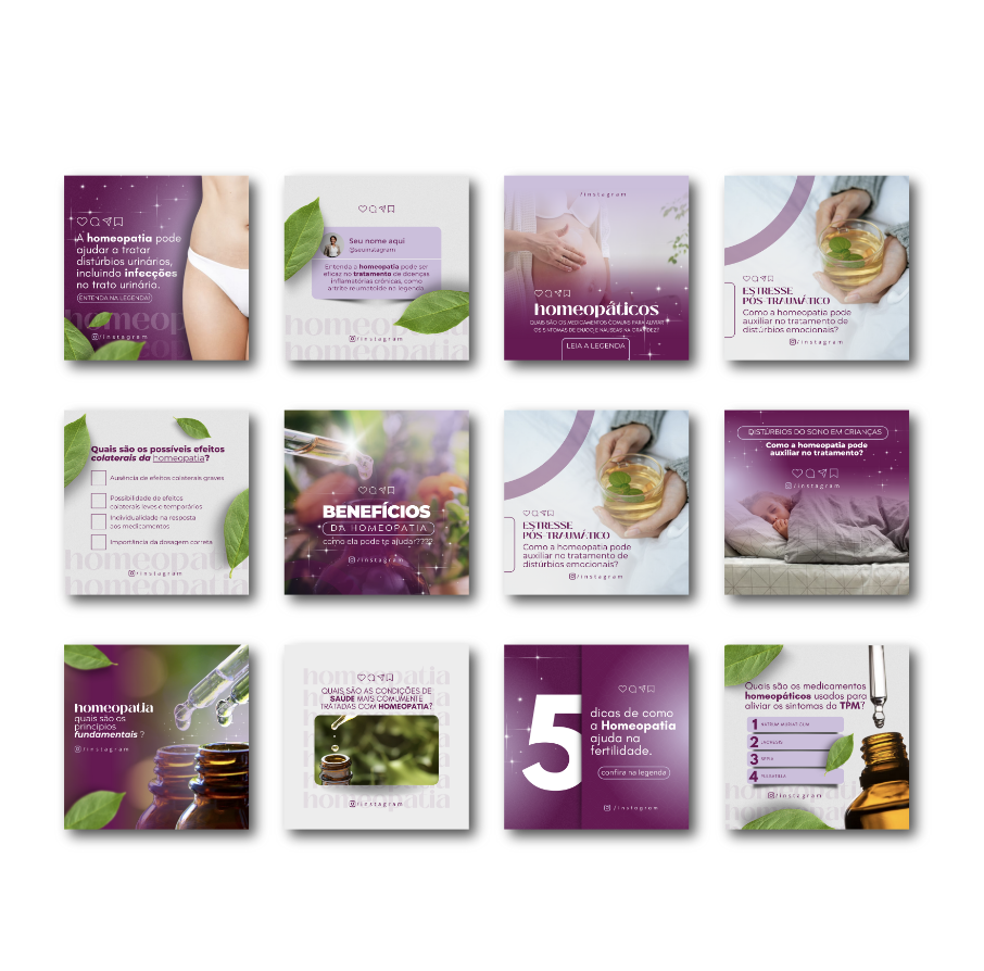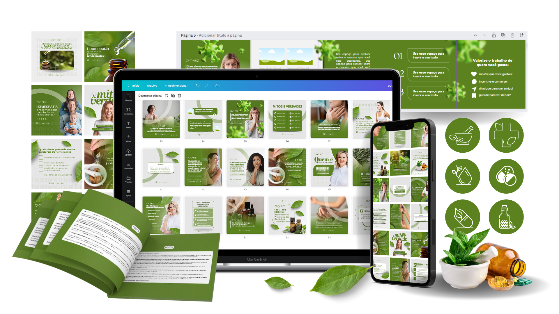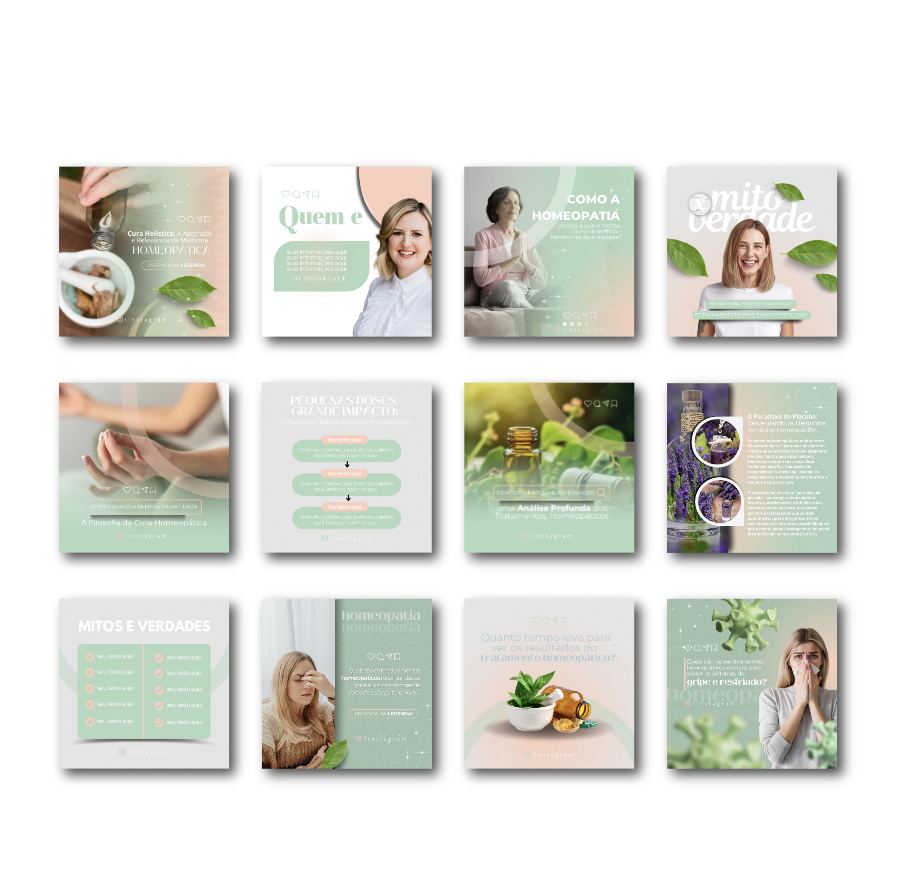 Conheça o nosso PACK de artes editáveis no Canva para HOMEOPATIA criado especialmente para ajudar você a produzir conteúdo estratégico e com qualidade.